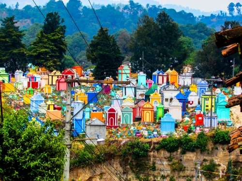 A pocas cuadras del mercado está el cementerio, muy llamativo por sus vivos colores.