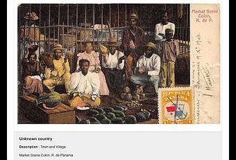 Grupo de personas de ascendencia afroantillano reunidos afuera del Mercado Público de la Ciudad de Colón en 1905.