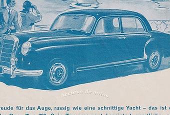 La automotriz alemana Daimler-Benz AG(Aktiengesellschaft, sociedad anónima) comenzó a fabricar el Mercedes-Benz 220 a mediados del año 1954. Se lo produjo hasta el año 1956. Justamente el mismo año de la publicidad suiza que vemos en esta sección, llamada “Publicidad Extranjera”.