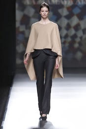 Miguel Palacio... Solo os puedo decir que me pareció absolutamente fantástica la colección del próximo otoño/invierno. Quizás porque es uno de mis diseñadores españoles favoritos. Porque para mi todo lo que hace tiene una delicadeza increible. Fue un desfile repleto de bordados de piedras metalizadas en infinidad de colores, lentejuelas, remates en tul, y esa pasamanería tan característica suya que adorna y remata en cuellos, puños, botones, ...Una colección en la que el vestido es el protagonista indiscutible pero que comparte espacio con los monos de pata ancha, las faldas tubo, y los tops amplios. Los tejidos como la seda bordada o el encaje de guipur pusieron el broche de oro a una coleccion fantástica.Sus colores?? los que mejor utiliza...negro y crudo mezclado con el verde y el morado. Todo un acierto!!