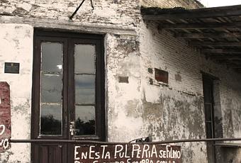 La última pulpería se refiere a la que ven en la imagen, con paredes de 45 cm de ancho, techo de chapas y piso de ladrillo, que conserva intacto su mostrador y las botellas con millones de partículas de polvo que se siguen acumulando sin que nadie haga nada por evitarlo.