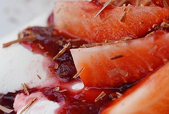 Cuando saquemos el merengue del horno y se enfríe ya solamente tenemos que montar nuestro plato: Colocamos las fresas troceadas encima de las tartaletas. Añadimos a la mermelada un chorro de agua y la calentamos en el microondas, removiendo bien, para que nos quede más ligera. La echamos por encima de las tartaletas. También se puede colar si no os gusta encontraros las pepitas. Por último incorporamos chocolate recién rallado y nuestro postre está listo para degustarlo.