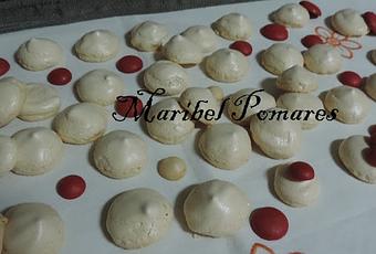 Han estado en el horno precalentado a 130º, calor arriba y abajo durante 60 minutos. Hay que ponerlos más separados que luego crecen un poco y se besan como dice mi madre.