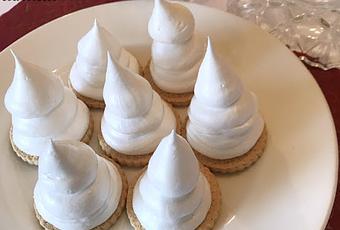 Se pone las galletas boca abajo y se pone el merengue al gusto, se mantiene firme con la forma que le demos.