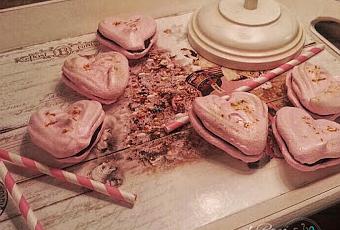 Merengues, unos rellenos de ganache de chocolate negro, naranja y cointreau y los otros rellenos de ganache negro, menta y licor de menta.