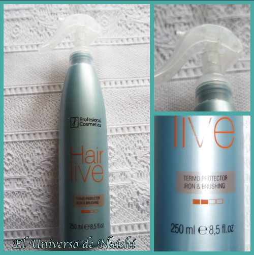 Otra empresa colaboradora fue Profesional Cosmetics, especialista en cuidado del cabello para profesionales, nos dejaron elegir también un producto de su web y yo me decanté por un protector térmico, ya que no tenía ninguno y aunque solo uso el secador creo que es necesario proteger el cabello de cualquier fuente de calor. Este si lo he usado ya bastante y me gusta mucho, no me deja residuo en el cabello, no lo engrasa y huele bien, además hace perfectamente su función de proteger el cabello.