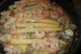 Añadimos chirlas. Cuando se abran añadiremos el resto