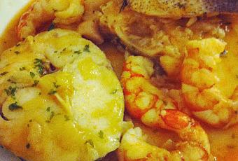 - 8 Rodajas de merluza fresca, (también puede ser congelada, pero pierde sabor). - 12 Gambones. - 1 Cebolla. - 1 o 2 ajos, (según veas el tamaño) - 1 Vaso de cerveza. - 1 Cucharada sopera de Harina. - 1 cucharada de café de Pimentón dulce. - Sal. - Perejil.