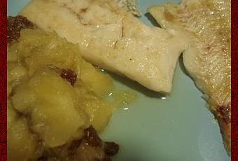 Servimos la merluza con el puré de manzana. Fácil ¿no?