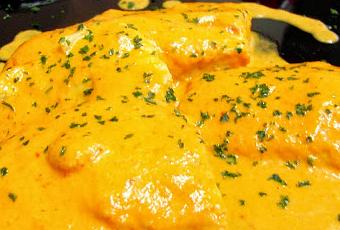 1 Merluza, limpia y preparada en lomos2 Pimientos rojos1 Pimiento verde1 Cebolla grande2 Dientes de ajos200 cc de Brandy400 cc de Nata para cocinarAceite de OlivaSal.
