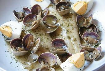 Introducimos las almejas en un bol con agua fría para que suelten toda la tierra que puedan tener.