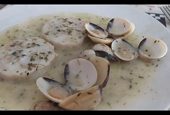 - Lo que queda es emplatar colocando primero el pescado y alrededor las almejas. Vertemos la salsa por encima y os recomiendo comprar un buen pan porque os aseguro que lo vais a necesitar para mojarla en la rica salsa.