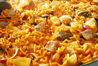 También te gustará la fideuá de merluza rosada y mariscos.