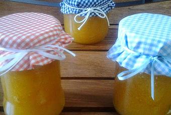 Con todos mis respetos a la Marquesa, yo he elaborado la mermelada de una forma más sencilla que la que ella describe en su libro de conservas.En primer lugar se esterilizan los botes poniéndolos en agua hirviendo, junto a sus tapaderas y manteniéndolos durante unos minutos en esa ebullición. Se sacan y se ponen a escurrir encima de un paño de cocina limpio.Lavamos bien la fruta, y en versión Thermomix, se hace de la siguiente manera:Poner en el vaso todos los ingredientes, programar 4 segundos, velocidad 5. A continuación programar 40 minutos, 100 grados y velocidad 2.Verter la mermelada en frascos de cristal, si son para consumir en poco tiempo, una vez fríos se guardan en el frigorífico, si no, se ponen al baño maría, poniendo en el fondo de la olla un paño o una gasa para que amortigüe el movimiento de los botes. Echar agua hasta que falte unos 3 centímetros del tope de los tarros. Una vez que el agua empieza a hervir, se mantienen durante 20 minutos, pasado este tiempo se deja enfriar la mermelada manteniendo los botes dentro del agua de la olla.Para elaborarla en una olla normal, ponemos todos los ingredientes en la olla,