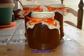 Mientras, en una cacerola grande, pondremos los tarros con sus tapas a esterilizar con agua que les cubra, un paño de cocina para que no se golpeen y se puedan romper, y a fuego vivo. Lo dejaremos hervir unos quince minutos. Sacamos con una tijereta larga para no quemarnos. Cuando esté la mermelada la vertemos con cuidado de no manchar los bordes de los tarros para que hagan bien el vacío y los iremos poniendo boca abajo.