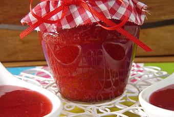 De vez en cuando vamos quitando la espuma que sube a la superficie, cocemos durante 30 minutos. Si queremos que quede sin trozos le pasamos la batidora.Vamos rellenado los frascos de cristal que hemos esterilizado previamente, los cerramos y los ponemos boca abajo para que hagan el vacío. Si queremos mantenerla durante varios meses, ponemos los botes al baño maría durante 20 minutos y dejamos enfriar en la misma olla.