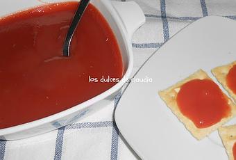 Poner a hervir en una olla la pulpa, azúcar y canela unos 20 minutos sin dejar de mover o a fuego muy bajo. Retirar y añadir la gelatina hidratada y escurrida, integrar bien y colar.Besos.