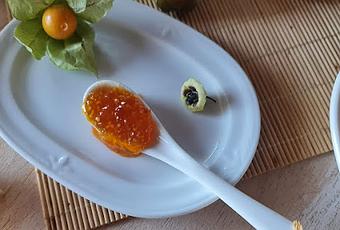 Y ya está aquí septiembre, por fin este tórrido verano va decayendo, y yo me alegro una barbaridad, porque he descubierto que el exceso de calor no lo soporto.Y con el nuevo mes llegan las noches más largas, y sobre todo más fresquitas, y ya apetece sentarse un ratito delante del ordenador, compartir nuevas recetas y visitar los blogs amigos.Yo empiezo con una mermelada que he descubierto el año pasado y que se ha convertido en una de mis favoritas, por dos razones: la primera y la más importante es que nos gusta mucho; y la segunda es que tengo muchísimos physalis desde hace meses, a esos si que les ha gustado el calor.