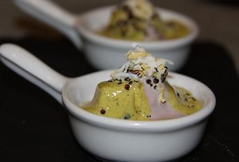 1.- RestauranteAlcalá Fusión (Alcalá, 268).Maribel Morales propone:-Ocopa Arequipeña.Una versión parecida a la papa a la Huancaina, que por color y por algunos ingredientes que componen su salsa recuerda a la salsa pesto.