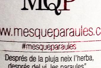 MQP 2012 es un tinto joven con crianza de 12 meses en barricas de roble francés. Un vino de 8 € que vale mucho más de lo que cuesta. Elaborado con Cavernet Sauvignon, Merlot, Syrah y Sumoll, la vinificación se produce por separado y las proporciones finales vienen marcadas por cada añada, aunque el Cavernet Sauvignon y el Merlot son casi siempre sus componentes principales. La DO Pla de Bages está recuperando variedades ( la Sumoll ) que hasta ahora habían sido olvidadas o aparcadas por ser muy exigentes en su cultivo y gracias a las cuales es posible elaborar unos vinos con personalidad.