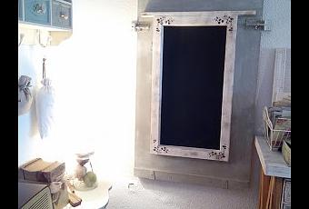 Esta mañana tocaba rematar trabajos que estaban sin terminar, como la mesa auxiliar que Mr.Crafter me preparo para el taller . Abierta , mesa para trabajar, cerrada, pizarra para anotar cuyo marco es la pata de la nesa. Chalk Paint turquesa vintage, que me encanta, pincel seco marrón chocolate y una de mis plantillas favoritas.
