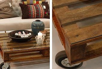 Una vez más podemos comprobar como con un palet podemos crear nuestro propio mobiliario. Esta vez le toca el turno a una mesa de centro cuyas patas son unas ruedas grandesy el sobre un cristal cortado a medida.