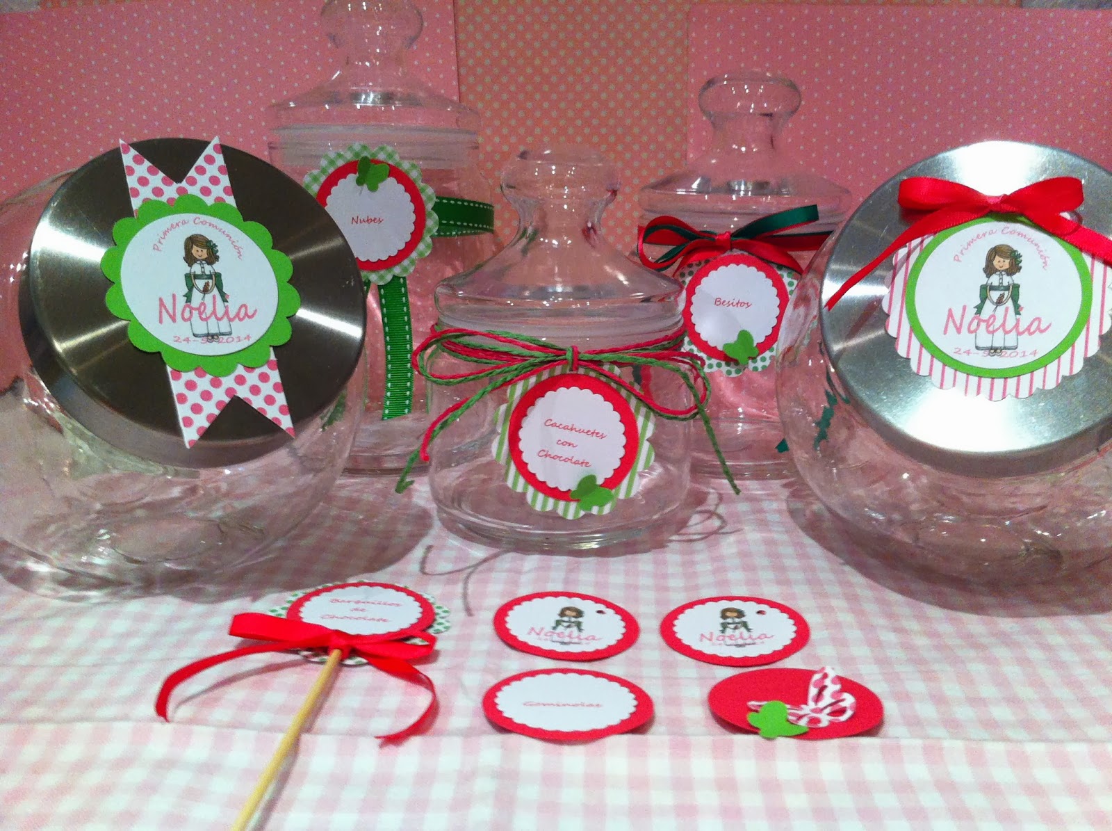 Y siguimos... aún nos faltan por mostraros las etiquetas, unos cuantos toppers y los recordatorios para completar este precioso conjunto de comunión en rosa y verde