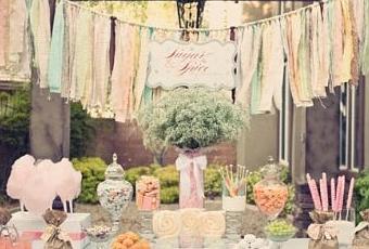 La mesa de dulces para bodas llamará la atención de por sí, dado a que es muy esperada por los invitados. Pero no está demás decorarla y así hacerla irresistible para todos. Una buena idea es utilizar un mantel llamativo, de una tela en colores vibrantes y/o brillantes. Como plus, se puede colocar un backdrop que sin duda le dará un toque especial. Se pueden utilizar flores, guirnaldas y hasta luces. Algunos, prefieren colocar una simple tira de banderines.