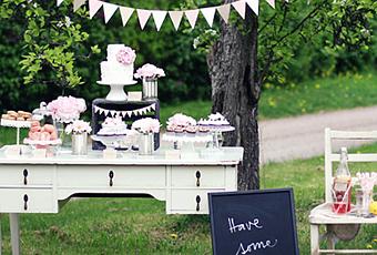 Me encantan las mesas de dulces en el exterior, y me encantan las mesas de dulces estilo “vintage”, así que dejadme enseñaros esta confección que reúne las dos. Esta mesa sencilla y romántica sería idónea para una fiesta de cumpleaños (a mi hija de casi 9 años le encantaría), un baby shower, un bautizo, incluso una comunión…