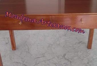 Mesa de madera de irokoMesa de escritorio de madera de iroko totalmente maciza teñido con 2 cajones en barniz acrilico satinado.