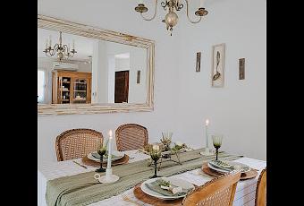 Para decorar la mesa, acomodé los huevos teñidos en un pie rectangular (@_myfuntime) con musgo y ramitas de ligustrina, y algunas mini florcitas. Un camino verde, mantel a rayas azules (@casabulla), un toque de madera, servilleteros (@chezmariannehome) cubiertos dorados(@demesasydemas) e infaltables velas (en candelabros de @victoriacestau). Me gustó mucho como se veían estos tonos y texturas en la mesa del comedor ♡