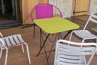 Como ya sabéis que me paso el día " muebleando" , este año para mis desayunos tempraneros en el porche he puesto esta mesa con estas sillas , que os parece?