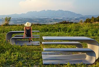 De diseño robusto y agradable, GRASSHOPPER habla de libertad de movimiento y ligereza de materiales. Instalado de forma aislada alcanza con su forma deliberadamente incompleta un amplio espacio. En un extremo se cierra con suavidad para convertirse en un lugar cálido en el cual conversar. En el otro, sus formas se abren y nos invitan a pensar y sentir el paisaje que nos rodea. La agregación de dos mesas cierra un volumen rotundo y aéreo a la vez.