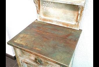Ésta es la mesilla que empecé con las chicas en el taller y que he terminado más tarde. Al final pinté también el mármol blanco imitando oxidados.