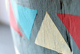 Para decorar mi mesita auxiliar quería hacer algo que fuera muy personal, pero que no cubriera todo el tronco de madera. Opte por unos motivos geométricos, que últimamente están muy de moda.