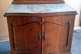 El primer paso fue tratarlas para la carcoma, ya que debido a su antigüedad, estos bichitos las atacan gravemente. Cuando ya la tenemos limpia y restaurada, decidimos la tonalidad que nos gusta y adelante! En este caso, elegimos una tonalidad de acuerdo con la cama que hicimos ya que son las mesitas que la acompañan. Los tiradores que usamos son los viejos porque estaban en muy buen estado y le aportan un aire vintage a la mesita. Simplemente bien limpias con un producto para metales, les da un tono oro viejo muy bonito.