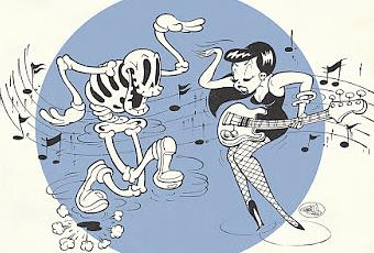 Como dije allá por el mes de febrero, la banda de San Petersburgo, Rusia, los enormes Messer Chups, están de lo más activos, ya que el 4 de diciembre de 2020 editaron un Ep de 6 temas titulado New wave or surf wave y el pasado 5 de febrero de 2021 otro Ep compuesto por 4 canciones y titulado Dracula hates killer icicles, otro Ep más el 1 de marzo de 2021 titulado Sparkling man y el 21 de octubre el que realmente es su nuevo álbum titulado Visiting the skeleton in the closet, a la venta en su bandcamp, pero que en formato físico no sale hasta este 2022. Siguen con su surf and roll, como ellos mismos lo definen, aunque ahí caben más cosas como el psychobilly con mucha psicodelia, música circense, jazz e influencias de música de los 60 y películas de serie B, etc...Oleg Guitarkin (que ya parece que no lleva los pelos hacia abajo) toca guitarra y dirige sintetizadores con programaciones, con esa belleza llamada Zombierella (Svetlana Nagaeva) al bajo y voces, más un batería que les suele acompañar que suele ser Boris Israel Fernández siguen en buen estado de forma.UFOnica era uno de los temas del trabajo, con su habitual destreza uniendo todo lo dicho antes en una canción instrumental cuyo vídeo no decepciona. Caravan from Mars también forma parte del trabajo con aire surfero, donde guitarra, batería y bajo se mezclan de manera genial.