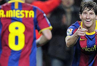 Con intervenciones fabulosas, Casto evitó los goles de Villa, Messi y Pedro, hasta que el propio Leo apeló a una de sus grandes definiciones y tras recibir de Iniesta se la picó para anotar, recién a los 44, el primer tanto del encuentro.