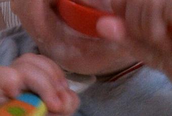 Con el mayor, que además tuvo también interés por la comida demasiado pronto, lo solucioné dejándole una cuchara y un plato sin nada. Podía estar con todos y practicar, sin adelantar el inicio de la alimentación complementaria.