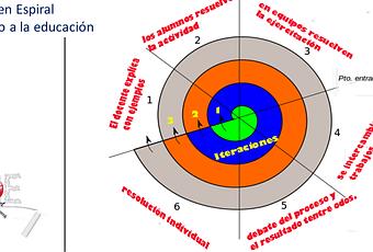 Quitando lo técnico y adecuándolo a lo pedagógico, este modelo evolutivo se caracteriza principalmente por un enfoque cíclico para el crecimiento incremental del conocimiento de la cual cada iteración, incremento o círculo del espiral se avanza de lo más simple a lo más avanzado. Por otro lado, cada incremento posee varias etapas.