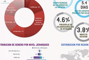 En los datos y gráficos del resumen de la organización se deben presentar datos sobre la empresa que reflejen una radiografía de la misma, acá se deberá incluir el tiempo promedio de trabajar en la empresa para definir la antigüedad de los colaboradores, también datos como rangos de edad en las diferentes áreas de la empresa, distribución de género hombres y mujeres, tanto por departamentos, niveles jerárquicos o sedes, conocer el porcentaje de colaboradores por regiones y toda información que permita reflejar la situación de la empresa y conocerla por su gente.