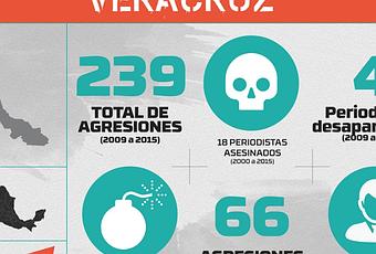 - En 2015, Article19 documentó 67 agresiones en Veracruz. En estas cifras, sobresalen tres asesinatos y el desplazamiento forzado de cuatro periodistas. Durante el gobierno de Javier Duarte, 15 periodistas han sido asesinados.