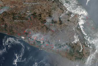 México: imagen satélite del humo de los incendios (14-05-2019)Click en imagen para ampliar