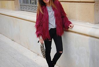 Hoy, os dejo una de mis mezclas prefes. Botines macarris, con jeans a mordiscos, cami básica y peluchín , dando el toque con los complemento máxi ( ya os digo que no solo son para el verano ) y clutch print animal.