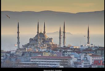 Dicho esto, hay una mezquita que destaca particularmentesobre las demás… bueno, quizás sean 2 o 3 las que destacan, perofundamentalmente la que más llama la atención es la conocida como Mezquita Azul(nombre oficial: Mezquita del Sultán Ahmed (en turco, Sultanahmed Camii)),obviamente haciendo honor al tipo que la mandó a construir, el Sultán Amhed I.Como dato anexo, el barrio donde se encuentra la Mezquita Azul también se llamaSultanahmed, y es lo que podríamos llamar el barrio más “turístico” deEstambul…