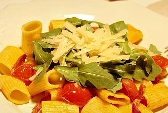 Artículo original: Mezze maniche con jamón speck, rúcula y tomates cherry ~ La ragazza col mattarello