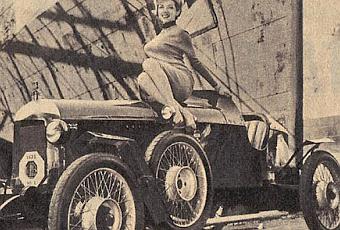 MG (Morris Garages) era una empresa dedicada a transformar automóviles de la marca británica Morris y que para los inicios de la década del veinte comenzó a construir sus propios automóviles. Años más tarde se convertirían en los deportivos ingleses más recordados. En la fotografía, sobre el MG de 1925, aparece la actriz Eileen Elliot, y la imagen fue tomada de la revista Parabrisas número 23 de octubre de 1962.
