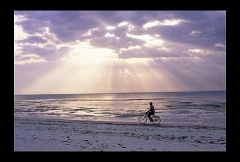 ca. 2005, Zanzibar, Tanzania — Fisherman cycling along the beach near Bweju against dramatic sky, island of Zanzibar, Tanzania, East Africa, Africa — Image by © Lee Frost/Robert Harding World Imagery/Corbis