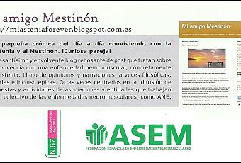 La revista de la Fedewración española de Enfermedades neuromusculares, ASEM, se hace eco en su número 67 de este blog que trata de incidir en la convivencia con una de esas enfermedades, la Miastenia Gravis.