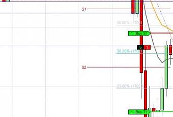 Como no me ha dejado ningún patrón en hora, el precio planta un patrón en 15 minutos justo por encima del 38,2%, asñi que cuando lo hace al tick decido entrar. Sé que es un poco peligroso, pero al menos puedo sacarle 10 puntos, sobre la marcha, y recuperar el día. Stop loss de -8 puntos, profit, más de 21 puntos, justo en la zona que tenemos por debajo. El precio empieza a ceder, en unos minutos me está dando 10 puntos, así que dejo el profit como lo tenía, esperando una caída en forma de una vela rápida. Pero los minutos pasan y la vela se queda parada. Vuelven a la carga, pero poco a poco, después de darme más de 12 puntos, el precio recupera, decido poner el even y esperar. Si no baja saldré a mercado con lo que tenga, pues más de una vez he visto como se paraban así para continuar subiendo para ir a cerrar el GAP de arriba dejado en el cierre de ayer. Finalmente, viendo que eran casi las 18:00h, y que el precio se suele parar hasta las 20:00h, decido hacer saltar la operación en profit de +6 puntos.